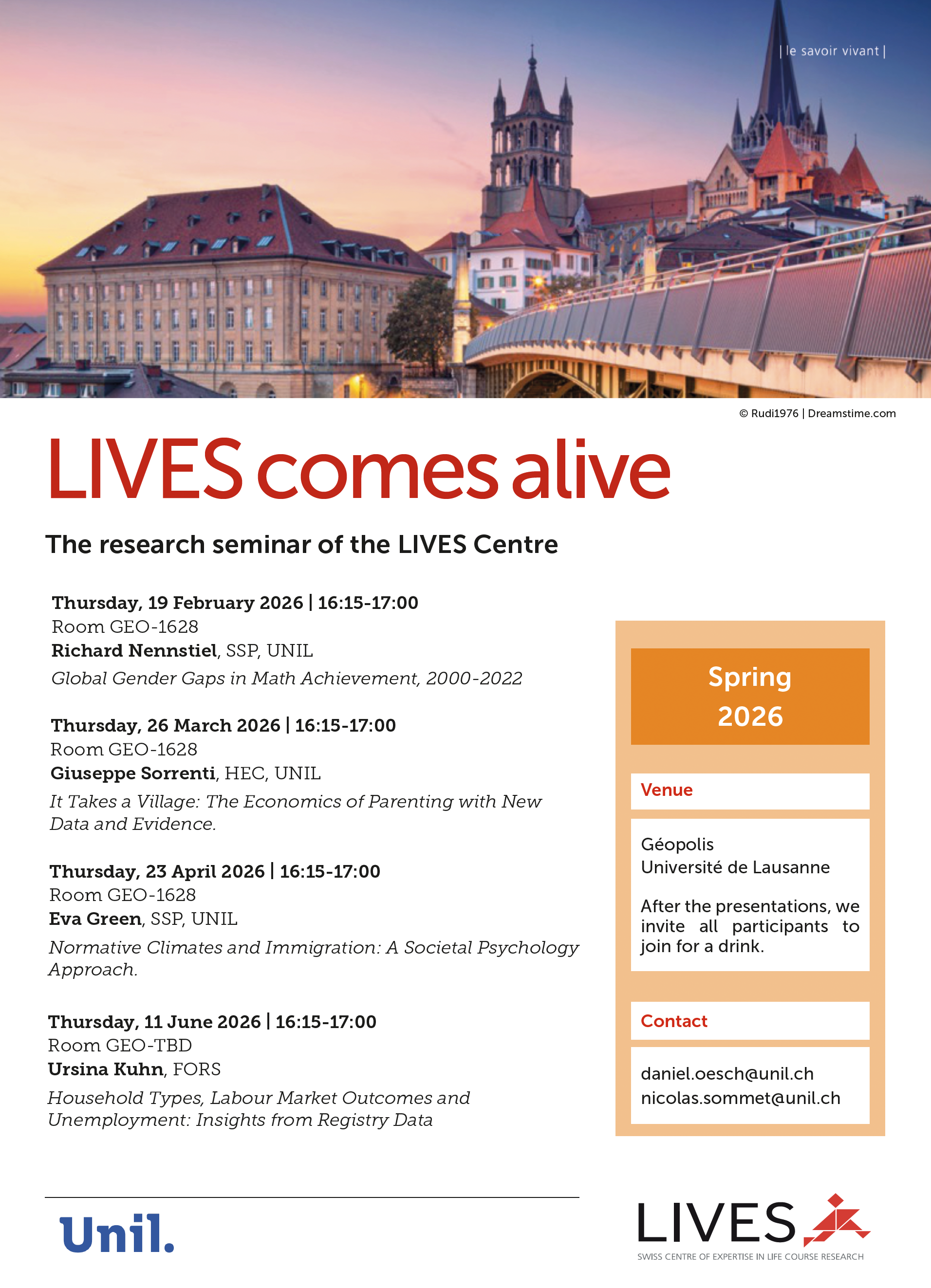 Depuis la rentrée académique 2022, LIVES organise chaque semestre une série de séminaires de recherche à l'UNIL et invite ses membres à présenter leurs travaux.